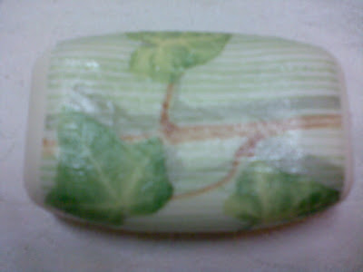 Sabonetes brancos com tamanho médio a pequeno com aplicações de motivos em guardanapo.